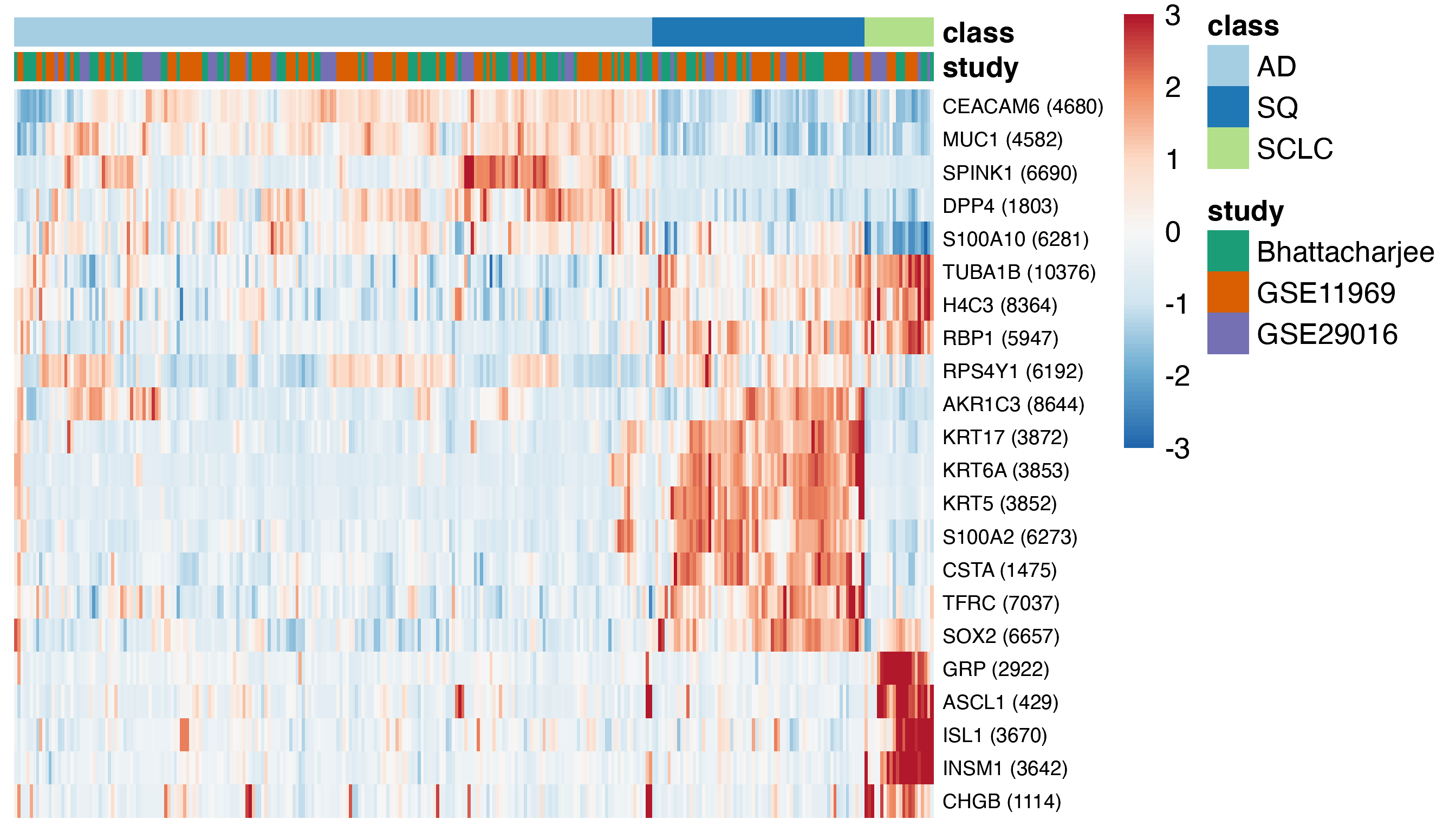 discoveryStudyNames = c('Bhattacharjee', 'GSE11969', 'GSE29016')